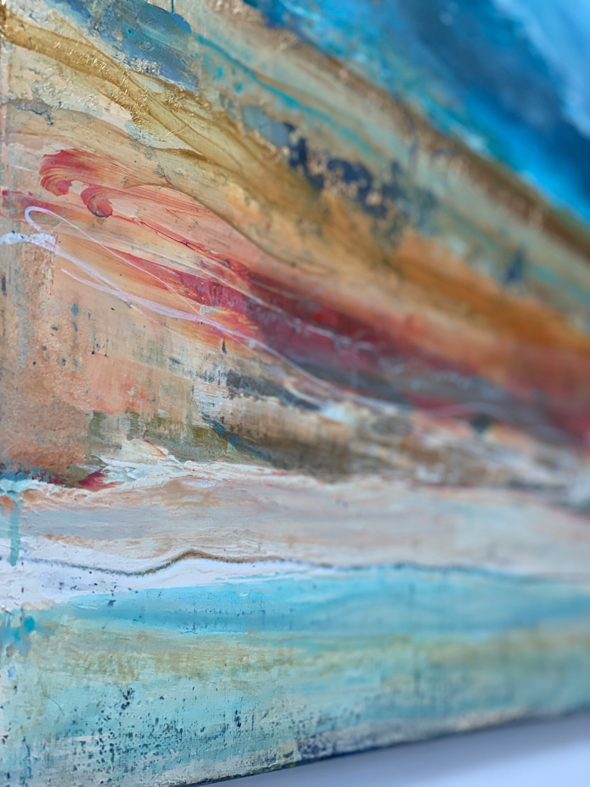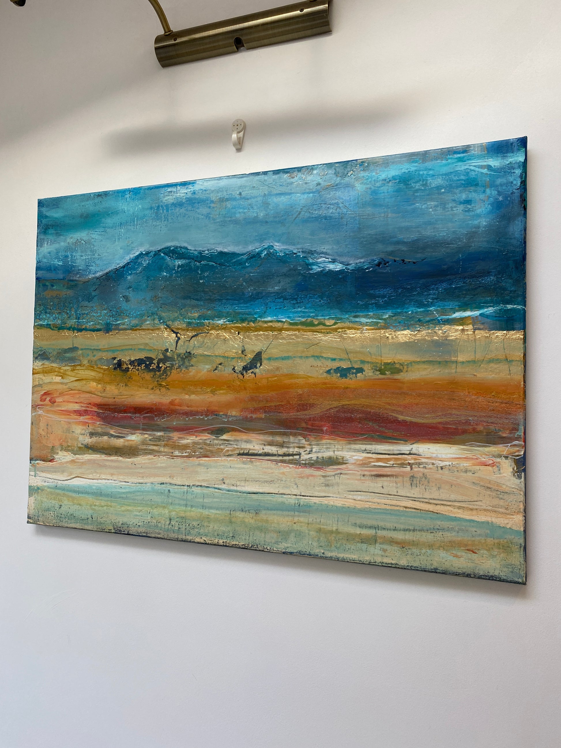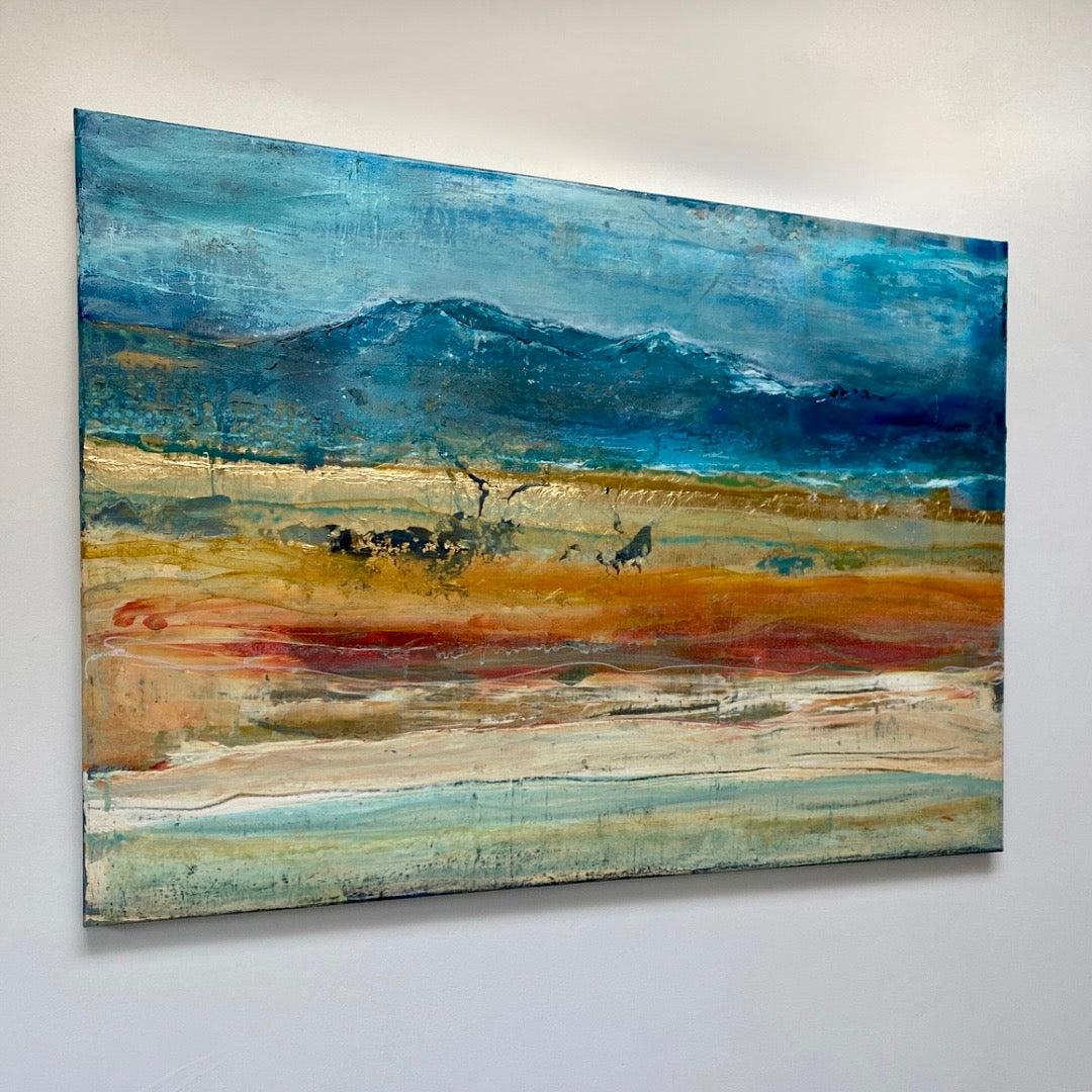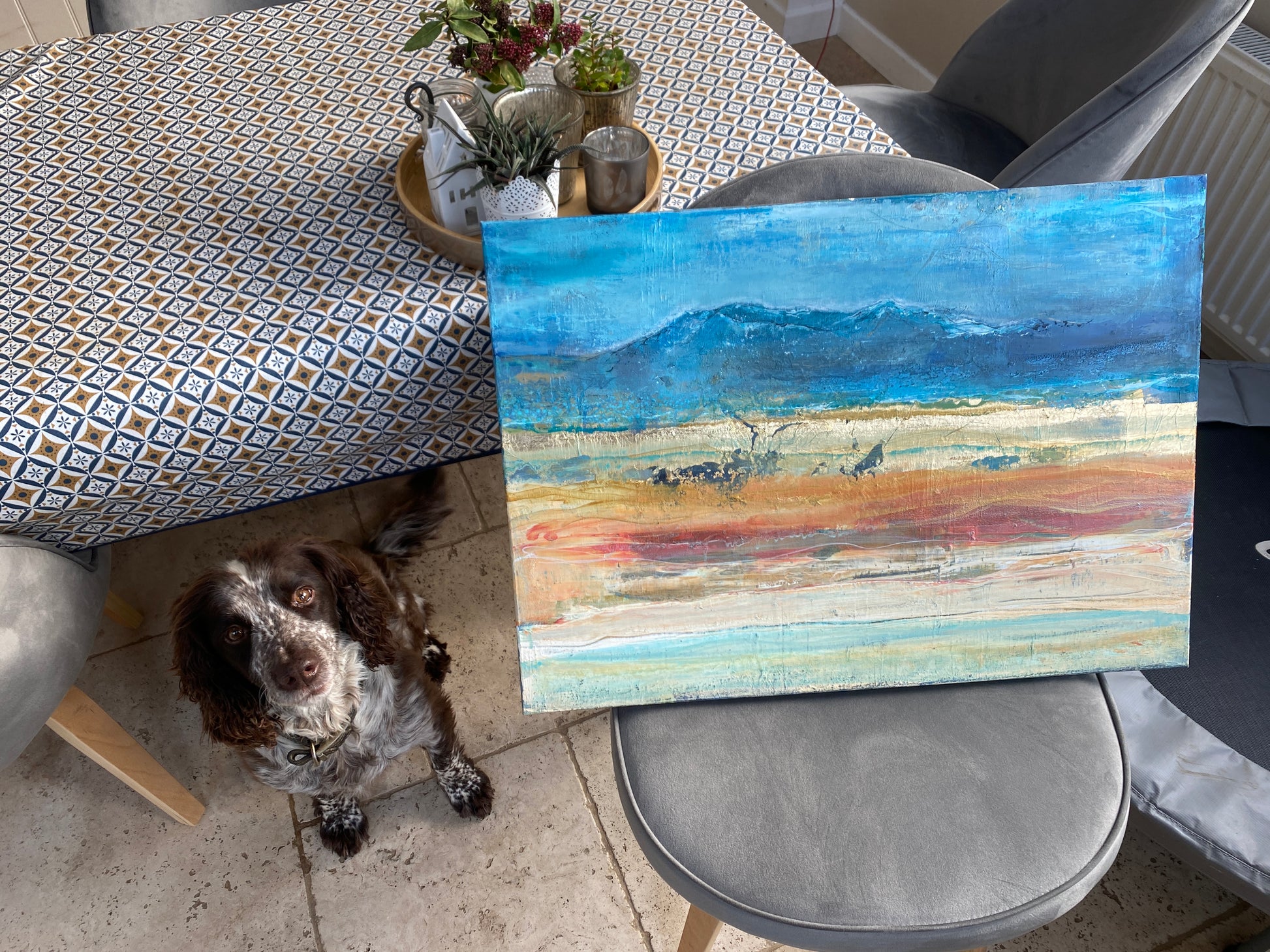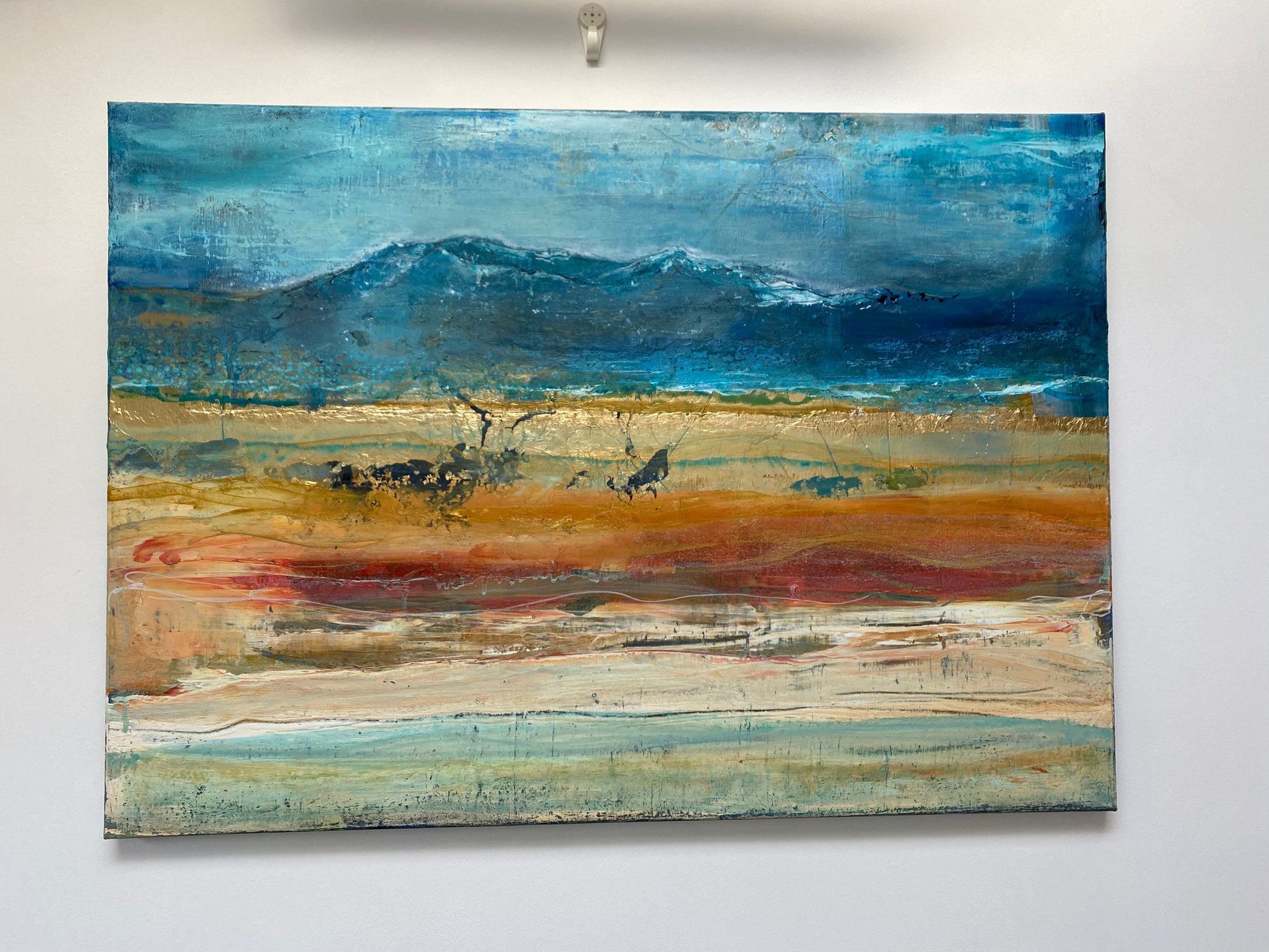 That sense of the distant mountains. Acrylic on canvas with gold leaf. 50cm x 70cm. (dog not included 😊)